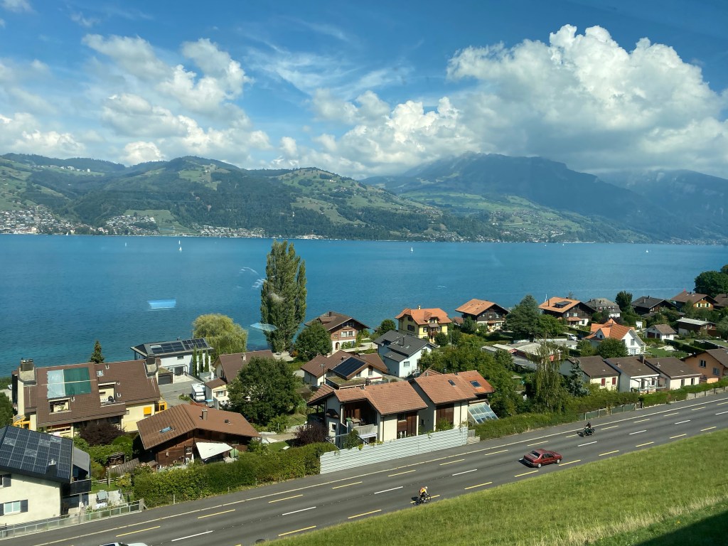 After our last European trip and the ghost trains in Germany, I wasn’t sure what to expect regarding train travel in Switzerland. We had to take 4 trains from the Zurich airport to get to our destination so my expectations were low…..but we made it!! And the trip was breathtaking!